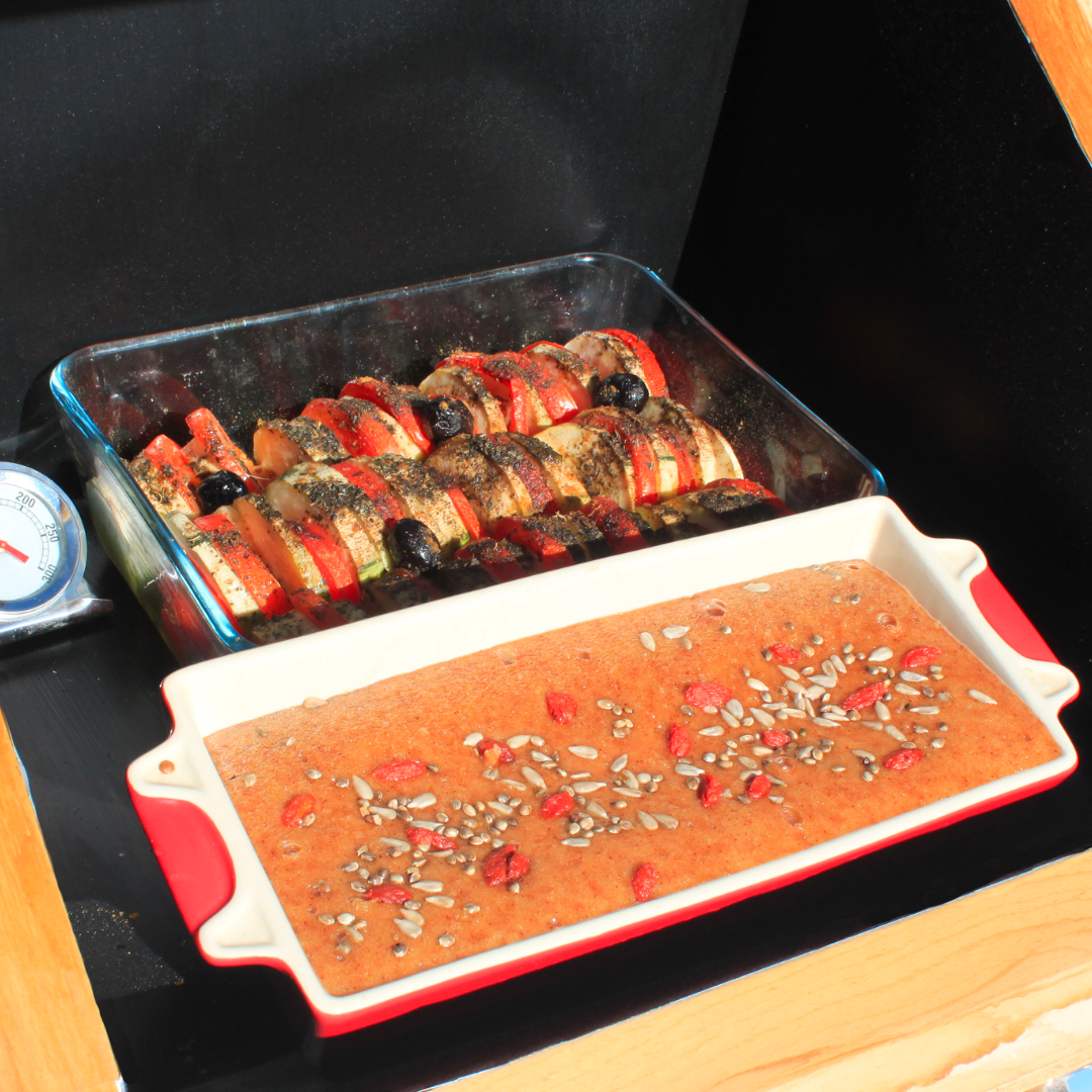 🥧 Tartas, pan, bollería, tartas dulces y saladas, carnes... ¡El horno solar cocina y calienta o descongela todos tus platos favoritos durante todo el año!